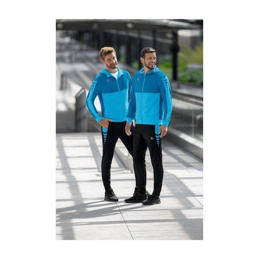 Six Wings treniruočių bliuzonas yra pagamintas iš tvirto medžiagų mišinio, kuris gali atlaikyti bet kokius sportinius iššūkius. Dėl medvilnės turinio treniruočių bliuzonas ant odos jaučiasi itin švelniai. Tuo pačiu metu poliesteris suteikia jai savo funkcines savybes. Treniruočių bliuzonas komplektuojamas su praktiniais priedais, tokiais kaip šoninės kišenės su užtrauktuku, platūs briaunoti rankogaliai ant rankovių ir apačios bei aukšta apykaklė su gobtuvu, todėl jį tikrai būtina turėti.