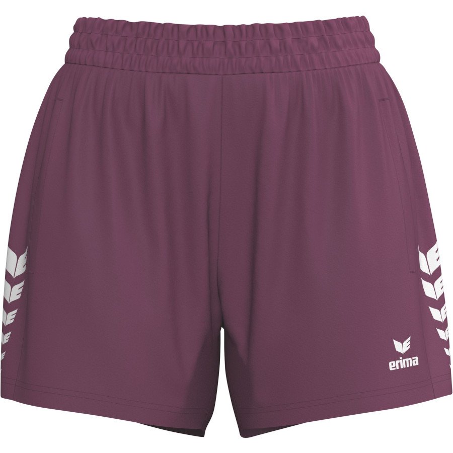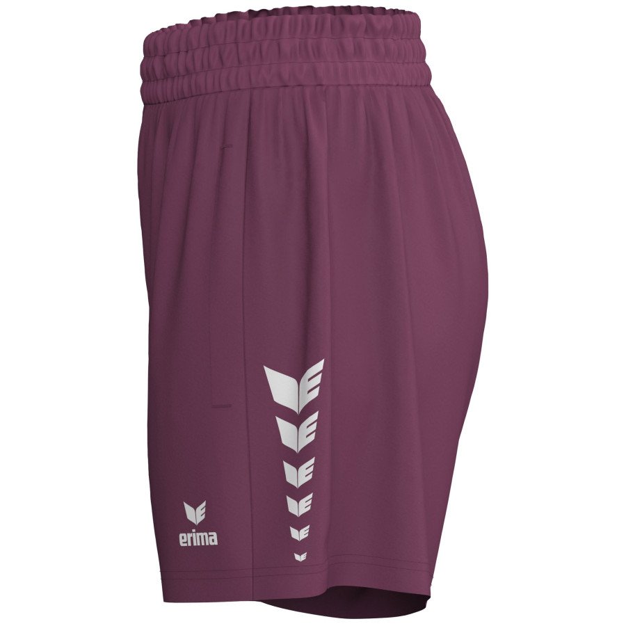 Šie šortai – idealus pagalbininkas intensyvioms treniruotėms. Jie pagaminti iš funkcionalios, drėgmę sugeriančios medžiagos, užtikrinančios komfortą. Elastinę juosmens juostą galima individualiai reguliuoti vidiniu raišteliu, todėl užtikrinamas saugus prigludimas. Užtrauktukais užsegamos kišenės suteikia patogų daiktų laikymą. Šoninės detalės su „ERIMA Wings“ raštu suteikia šortams laisvalaikio įvaizdį.