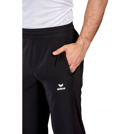 Vienodai išvaizdai treniruotėse ar varžybose! Prezentacinės kelnės pagamintos iš lengvos funkcinės medžiagos, kuri užtikrina aukštą komforto lygį dėl optimalaus temperatūros reguliavimo. Be to, medžiaga labai elastinga, todėl galėsite mėgautis visa judėjimo laisve. Tai papildo šoniniai tempimo įdėklai. Kad kelnės būtų optimaliai prigludusios ir puikiai prigludusios, jos yra su plačiu juosmeniu su raišteliu ir lanksčiais rankogaliais ties kulkšnimis. Užtrauktukas kojos gale yra labai praktiškas, kad būtų lengva apsirengti ir nusirengti. Šoninėse kišenėse su užtrauktuku galite saugiai laikyti savo vertybes.